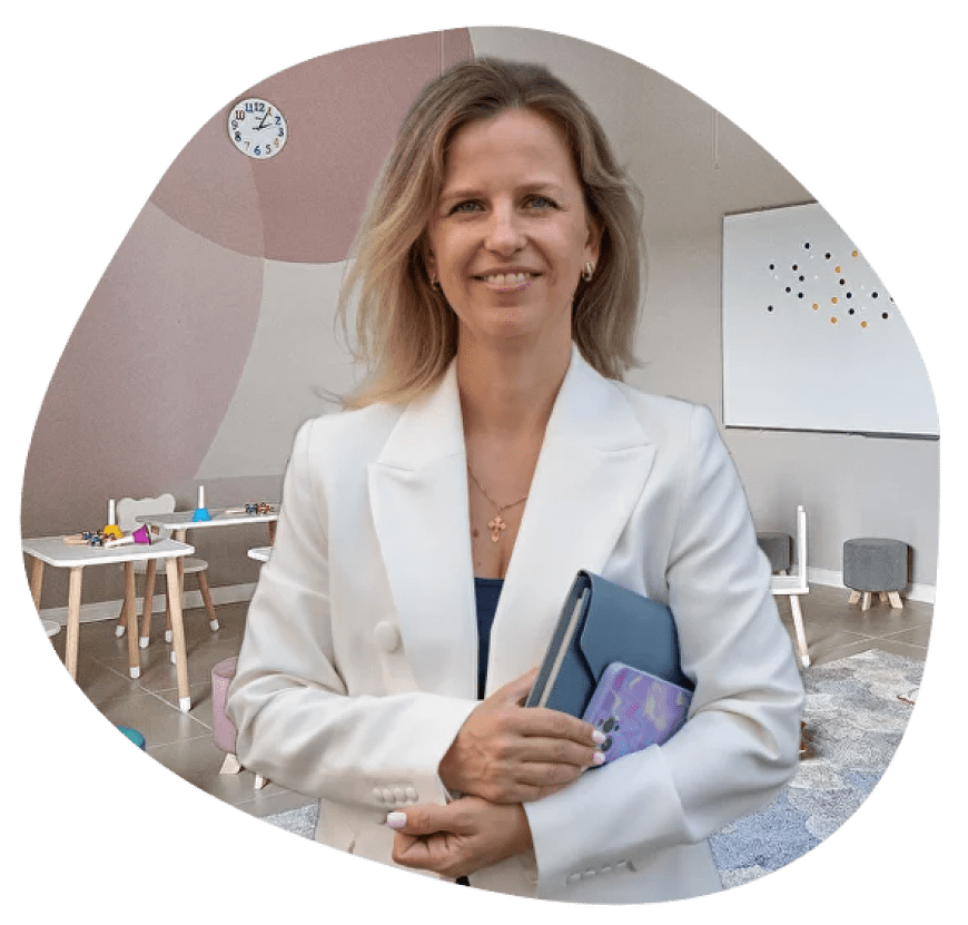 — Образование высшее педагогическое. — Повышение квалификации: «Работа с детьми от 1 года до школы», «Предшкола нового поколения», «Подготовка к школе на 5 уровнях», «Исправление почерка по методике О. Лысенко», «Детская нейропсихология», «Нейропсихологический подход к коррекции почерка». — Опыт преподавательской деятельности — 15 лет. — Работает в клубе с 2015 г. — Создала программу по подготовке к школе для Академии развития.