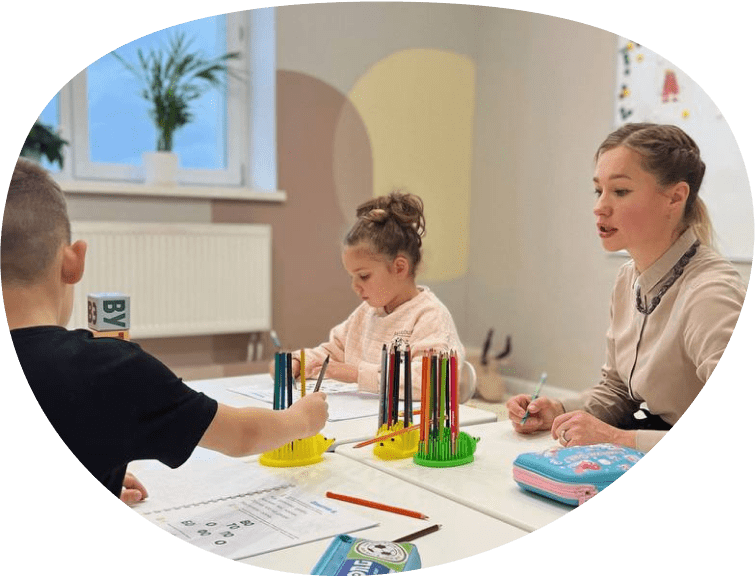 Уроки проходят в оборудованных классах, а ученический комплект включает в себя яркий рюкзак, абак и 8 учебников.